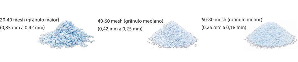 A EincoBio apresenta seus grânulos em diversos tamanhos de partículas isoladamente, desde a mais grossa até a mais fina.