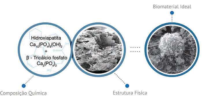 Contém 65% de HA e 35% de ß-TCP, equilíbrio entre reabsorção/remodelação e manutenção da resistência mecânica (resultado do processo utilizado para obtê-la). Seus componentes e características são encontrados na matriz mineral óssea e no esmalte dental.