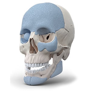 As peças personalizadas paciente-específico com OSTEOSYNT para reconstrução óssea e reparo anatômico e estético, permitem a construção de peças individualizadas para cada caso. São feitas sob medida para cada paciente para reconstrução da face e do crânio, principalmente, tendo como diferencial uma peça com material BIOATIVO, propiciando interação com o organismo e formação de novo tecido ósseo, com a resistência mecânica adequada.